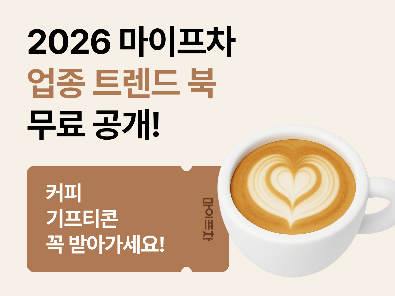 오늘의 프프레터도 마이프차가 야심 차게 준비한 '2026 마이프차 트렌드 리포트' 특집으로 인사드려요. 2025년 한 해 동안 가장 주목받았던 프랜차이즈 순위는 물론, 예비 사장님들의 목소리로 예측한 2026년 창업 트렌드까지 상세히 담았습니다. 전문가의 시선으로 분석한 시장 전망을 통해 작년과는 또 다른 창업 환경의 변화를 한눈에 파악하실 수 있어요.